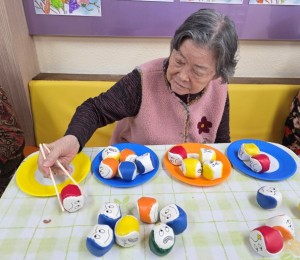 노인여가프로그램 젓가락 공옮기기x색인지활동