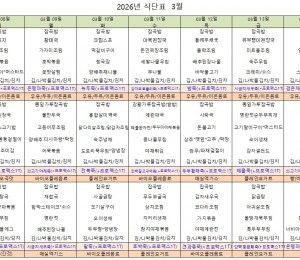 주간 식단표 ( 26.03.08 - 03.14)